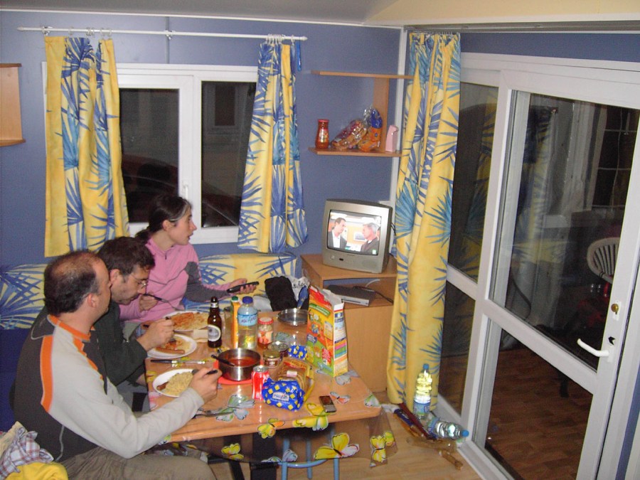 cenando en el Mobil-Home
