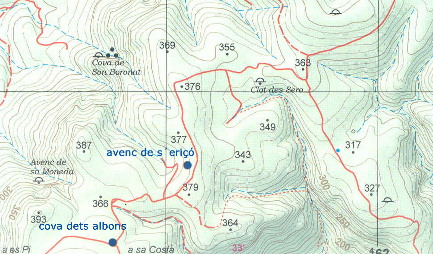 Avenc de s´Eriçó, cova dets Albons y otras