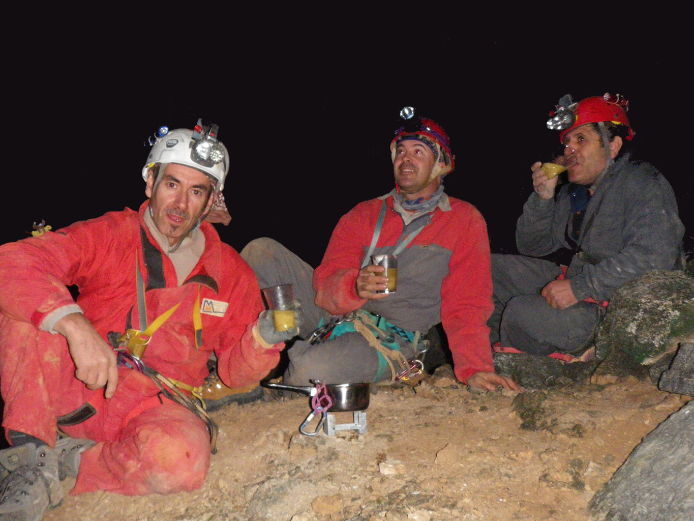 Aquí siempre hace frío, pero después del trabajo J.Vicente nos da una sorpresa. …¡Ya lo que nos faltaba…. Toma cocinita…! José Vicente se trae hornillo, cacerola y vasos. Nos tomamos una sopa de fideos para chuparse los dedos. La llave fija le sirve para menear caldo en cacerola. Ummm… están de muerte, otra por favor, con el frío que hace…