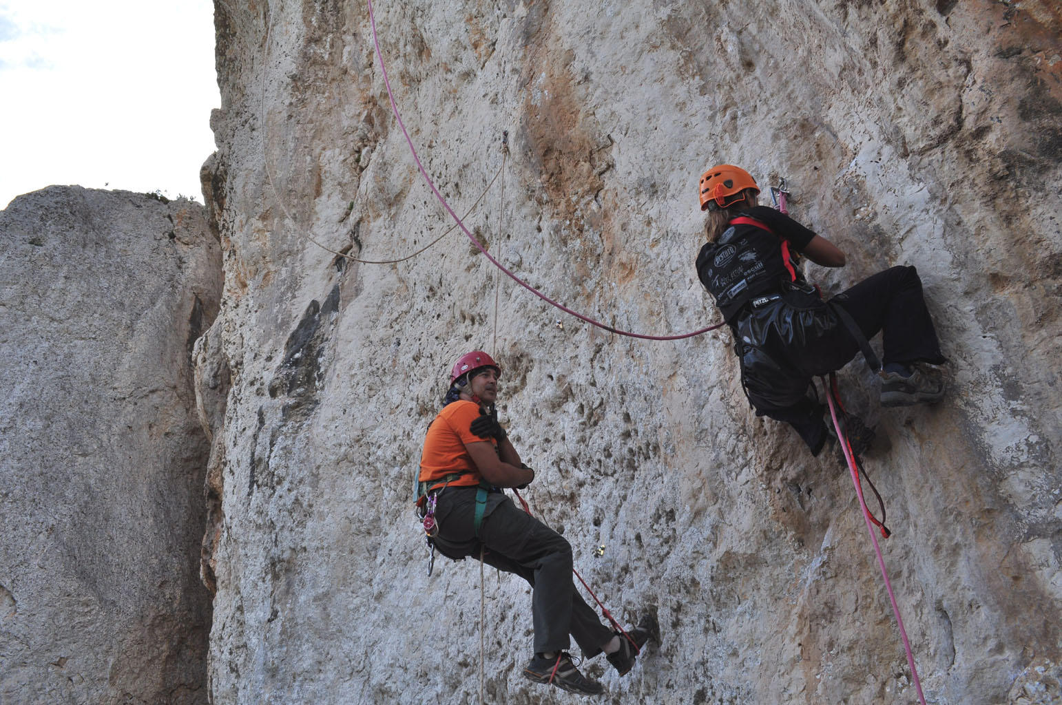 Carmen enseñando técnica de fortuna en torrentes a Antonio