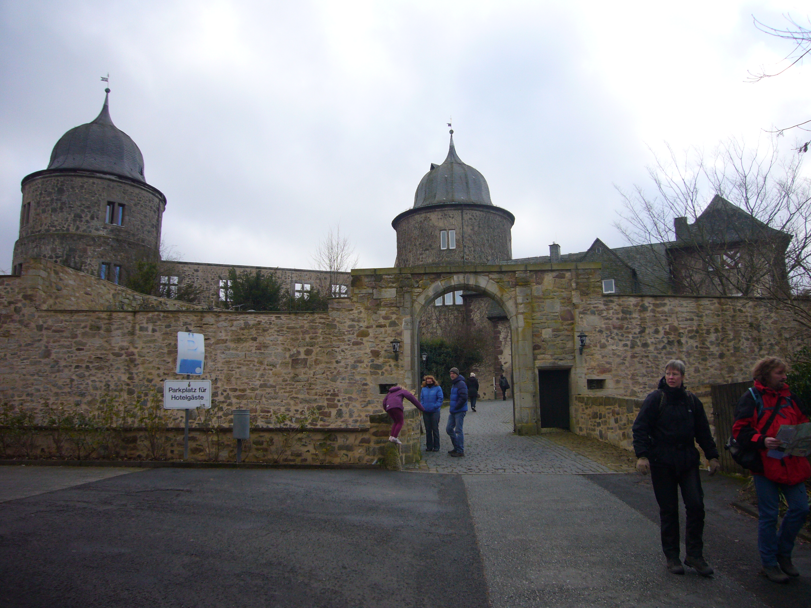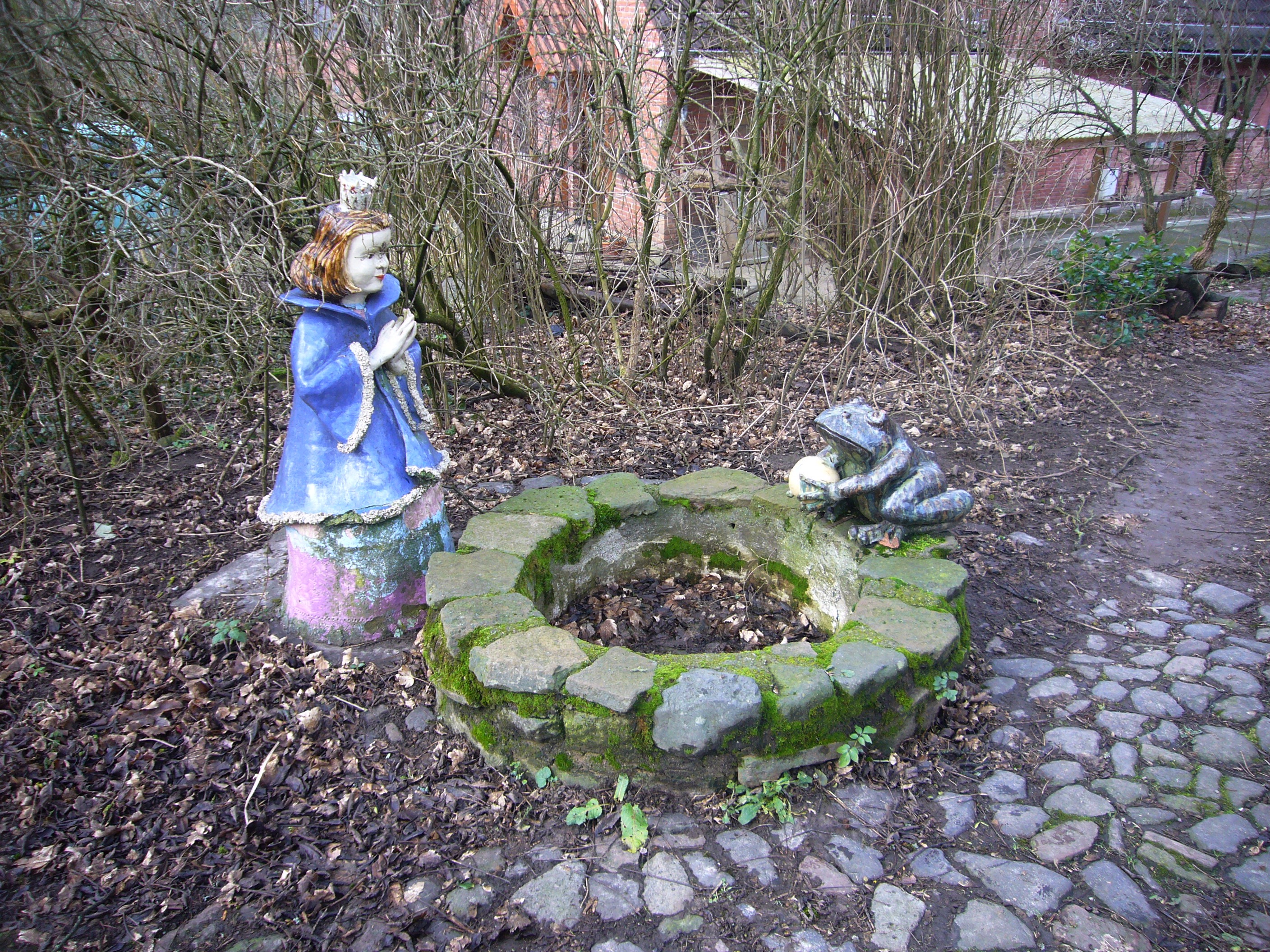 Hoy no llueve, por lo que tendremos un respiro para poder pasear y visitar varios sitios de interés. Primero decidimos ir al castillo Dornröschenschloss. Actualmente es un hotet-restaurante, manteniendo parte de su arquitectura en su interior. Situado muy cerca de la ciudad alemana de Cassel, Dornröschenschloss Sababurg data del siglo XIV y fue el escenario elegido por los Grimm, huéspedes habituales, para su cuento ‘La Bella Durmiente’ (Disney trasladaría la historia al castillo neogótico de Neuschwanstein, en Baviera). Sus dos torreones se alzan entre un bosque de robles y oníricos jardines, aunque sólo uno de ellos y un anexo acogen las 17 habitaciones del hotel. En los jardines adyacentes, encontramos varias figuras de los personajes de los tan famosos cuentos de los hermanos Grimm; Hansel y Gretel, El Enano Saltarín (Rumpelstiltskin), Rapunzel, Caperucita Roja, Blancanieves, La Cenicienta, Pulgarcito, etc…