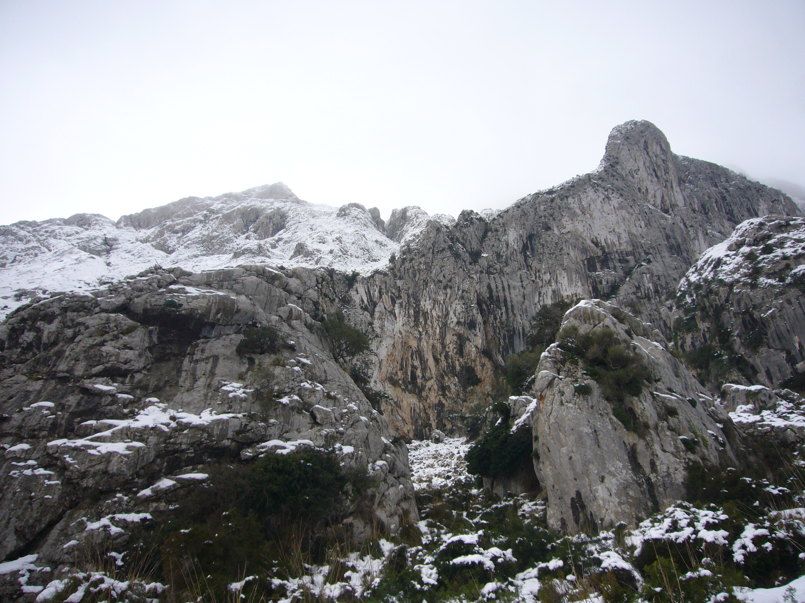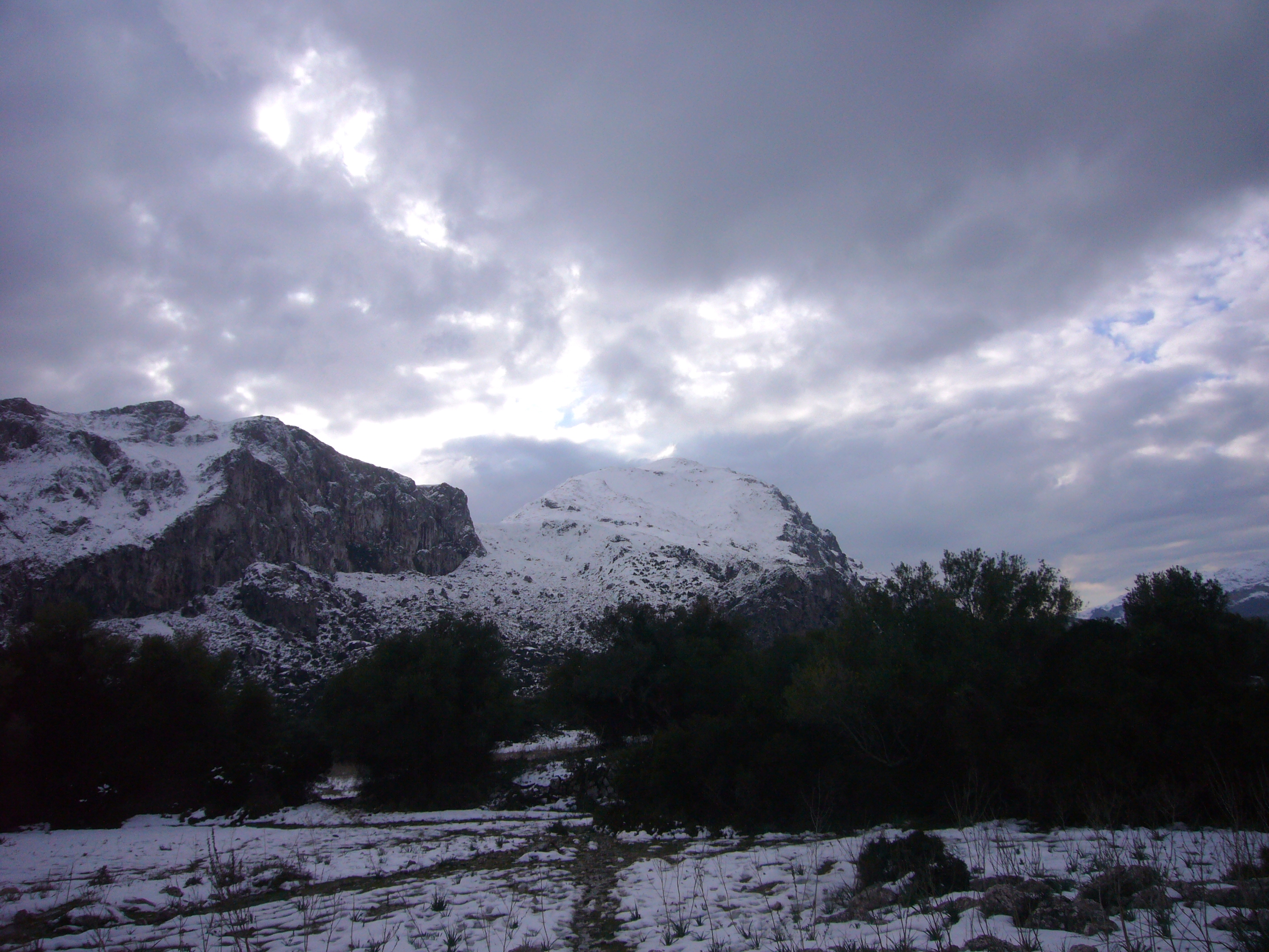 Creo recordar que desde 2010 no nevaba tanto, para esa época estaba yo con mis amiguetes apatrullando por el Teix. Así que, aparcamos el avenc del sábado y nos vamos al Puig Tomir. Las carreteras a Lluc, cortadas, sería raro raro… Nos aproximamos a Pollença y de ahí carretera hacia la Vall d´en Marc. Vemos la montaña nevada a tope, nos emocionamos, sobre todo Laura, que está radiante de alegría y con su gorrito para la ocasión.