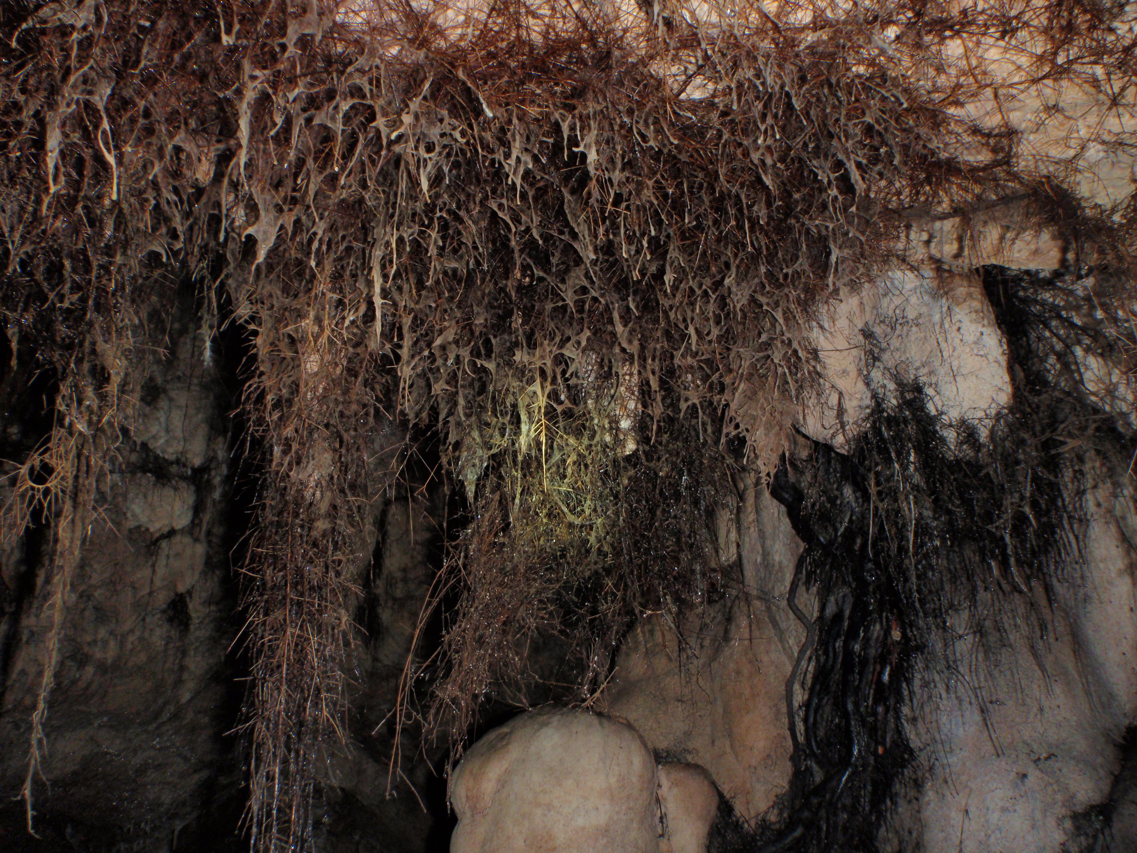 Sala amagada de ses Arrels. Raíces de apariencia lechosa.