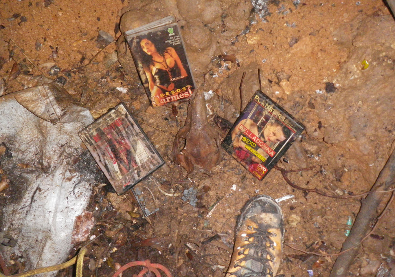 ….-¡ Pero esto es asombroso ¡, estamos rodeados de huesos y putrefacción, también de carátulas ¡¡¡de películas porno!!!….